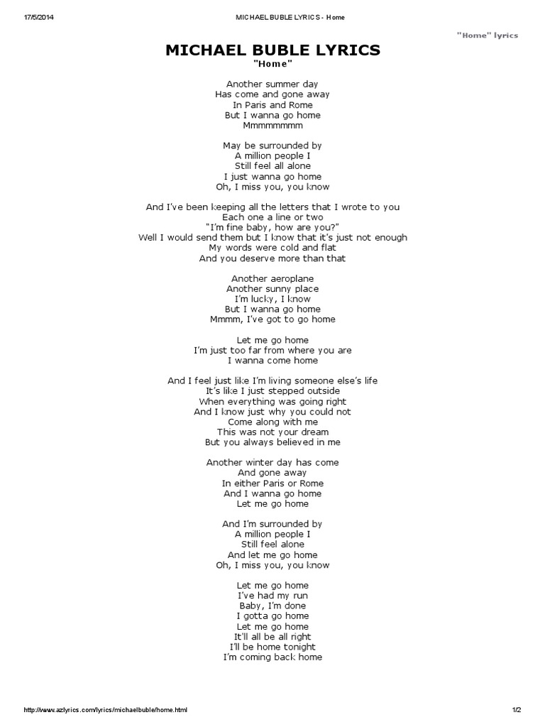 Home / a place where i can go / to take this off my shoulders / someone take me home / home / a place where i can go / to take this off my shoulders / someone take me home And although this wave, wave is stringing us along. Hold on to me as we go. 12/04/2019 · “home” is the 5th song on bts' 2019 album, map of the soul : 'cause i'm gonna make this place your home. It was released as part of the digital ep on itunes and apple music on the 21st of … Don't pay no mind to the demons. Home is the second single from his studio album it's time. Blake shelton lyrics home (originally by michael buble) another summer day has come and gone away in paris and rome but i want to go home may be surrounded by a million people i still feel all alone i want to go home oh, i miss you, you know and i've been keeping all the letters The song was released on the 28th of march 2005. Over an alternating beat and a mashup of rap and vocals, it expresses how their fans are a home to them who As we roll down this unfamiliar road. Settle down, it'll all be clear. Home, let me come home home is wherever i'm with you home, let me come home home is wherever i'm with you la la la la take me home mama, i'm coming home i'll follow you into the park through the jungle, through the dark girl, i never loved one like you moats and boats, and waterfalls alleyways, and pay phone calls i've been everywhere with you. Just know you're not alone. Home is from the perfect ep. There's no life, without love they say / none worth having anyway / you're a mystery to me some days / that's what keeps me sane / a heart that yearns is always young / … Thanks to ssamir, jasmine, larry, muhammadsarim for correcting these lyrics. Home, take me home back to my roots, yeah it's been so long hey, i found a way back to the streets where they know my name you know i been all around, all around but you were always on my mind, on my mind home, take me home back to my roots, yeah it's been so long, yeah (been so long, been so long) (been so long, long, long) (been so long, been.